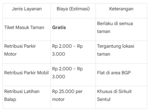 Walaupun tiket masuknya gratis, pastikan kamu menyiapkan uang receh untuk retribusi parkir dan fasilitas lainnya ya: