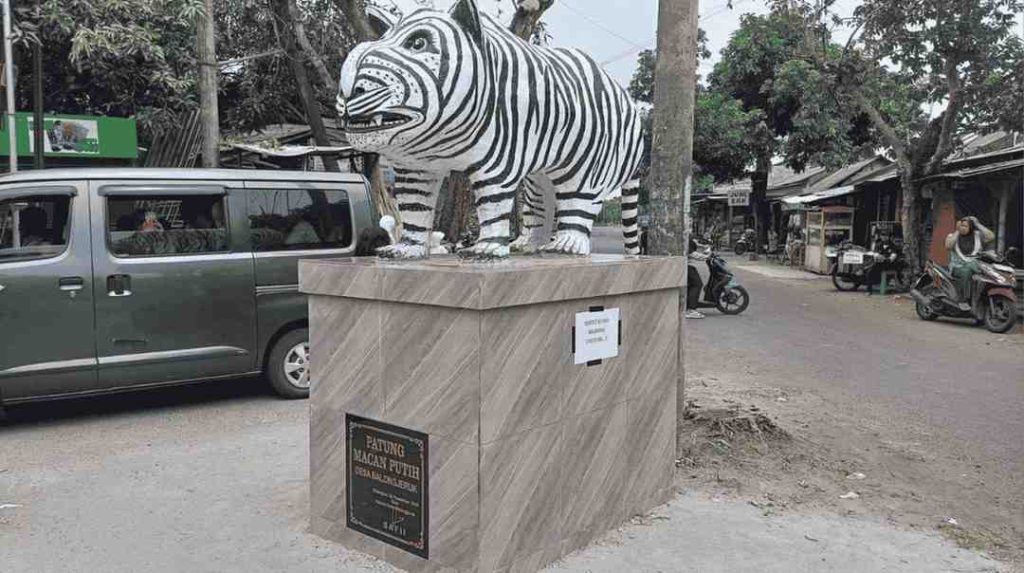 Ekspektasi publik terhadap patung macan putih biasanya berkelindan dengan citra predator yang sangar, gagah, dan berwibawa. Namun, apa yang berdiri di pertigaan Desa Balongjeruk, Kabupaten Kediri, justru melakukan subversi radikal terhadap arketipe tersebut.
