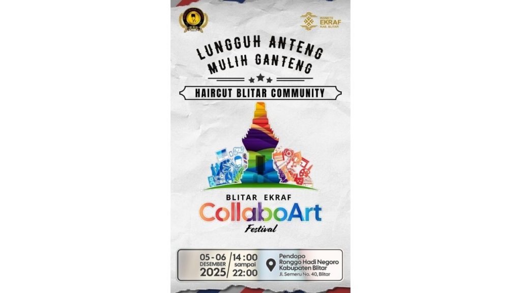 Blitar – CollaboArt Festival bakal digelar di Pendopo Ronggo Hadi Negoro, Kabupaten Blitar, pada 5–6 Desember 2025.