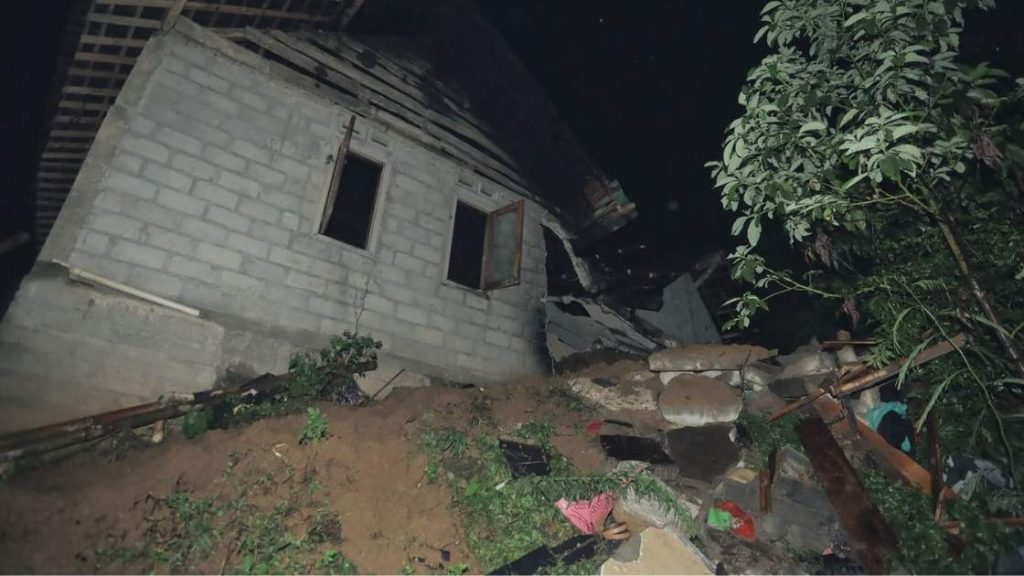 Menurut laporan kepolisian, tanah longsor menimpa bagian dapur dan kamar rumah yang dihuni anak serta menantu pemilik rumah..