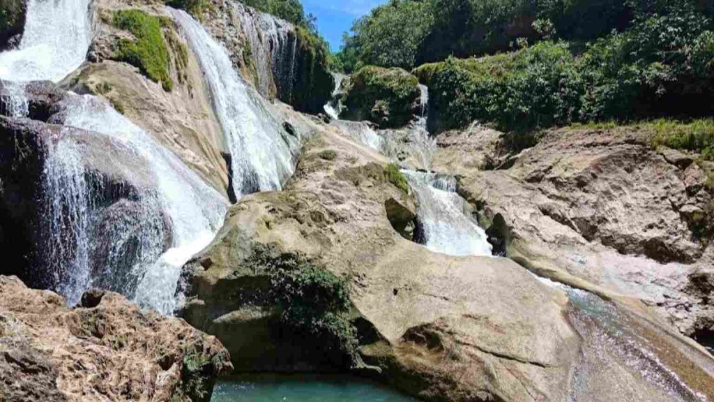 Keindahan eksotis ini menyerupai ngarai kecil yang memecah aliran sungai menjadi kolam-kolam tenang bagi pengunjung yang ingin merelaksasi diri di tengah suasana asri.