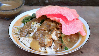 Isian rujaknya terdiri dari sayuran segar, tahu, tempe, dan lontong, yang disiram dengan bumbu kacang yang dipadukan petis khas. Bumbunya kental, dengan rasa gurih, manis, dan aroma petis yang kuat, memberikan sensasi yang bikin ketagihan.